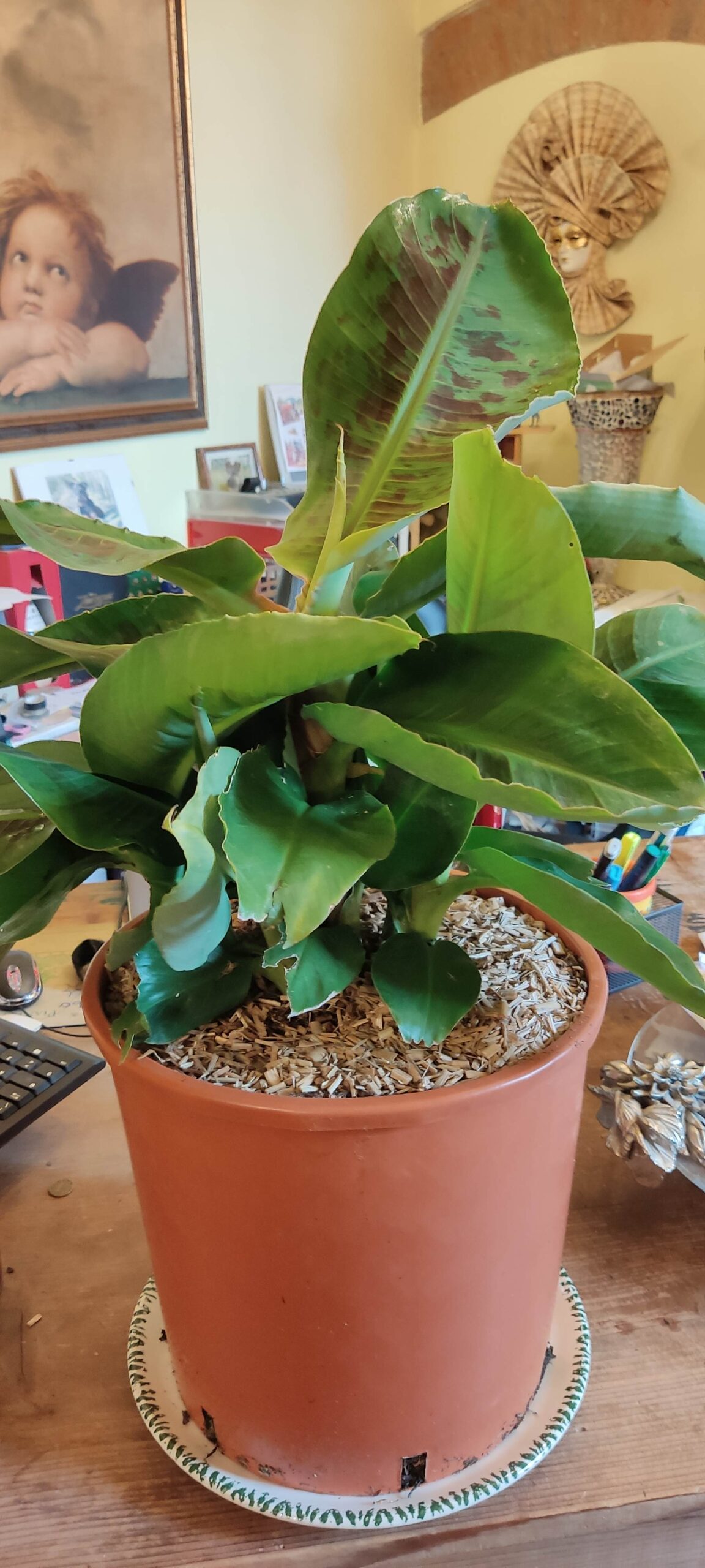 Banano, adatto anche per interni luminosi. Forma cespugli di medie dimensioni. Può essere collocato all’ aperto, in pieno sole. Puo raggiungere 2 metri di altezza.
