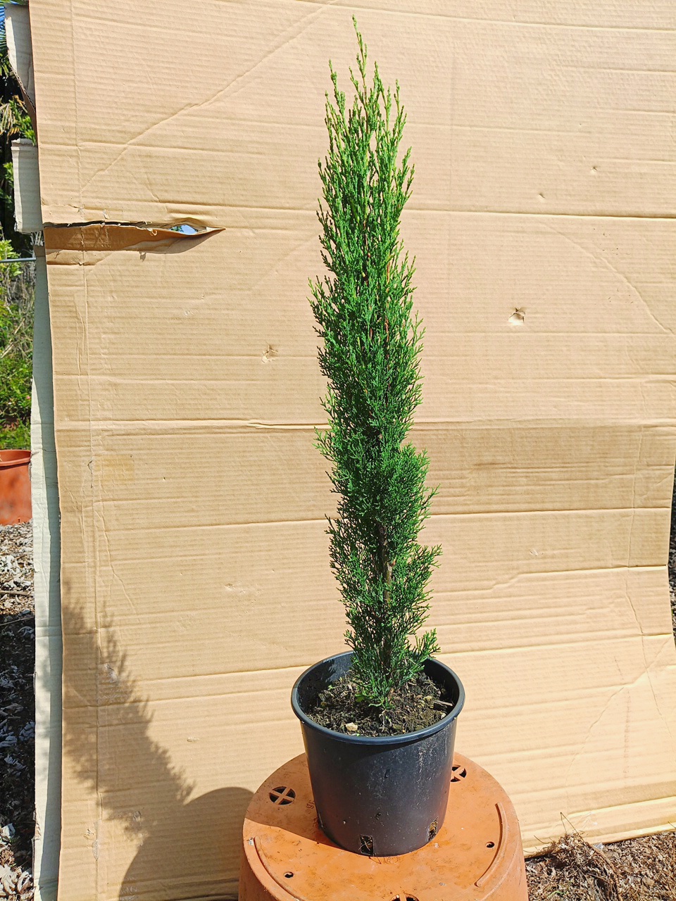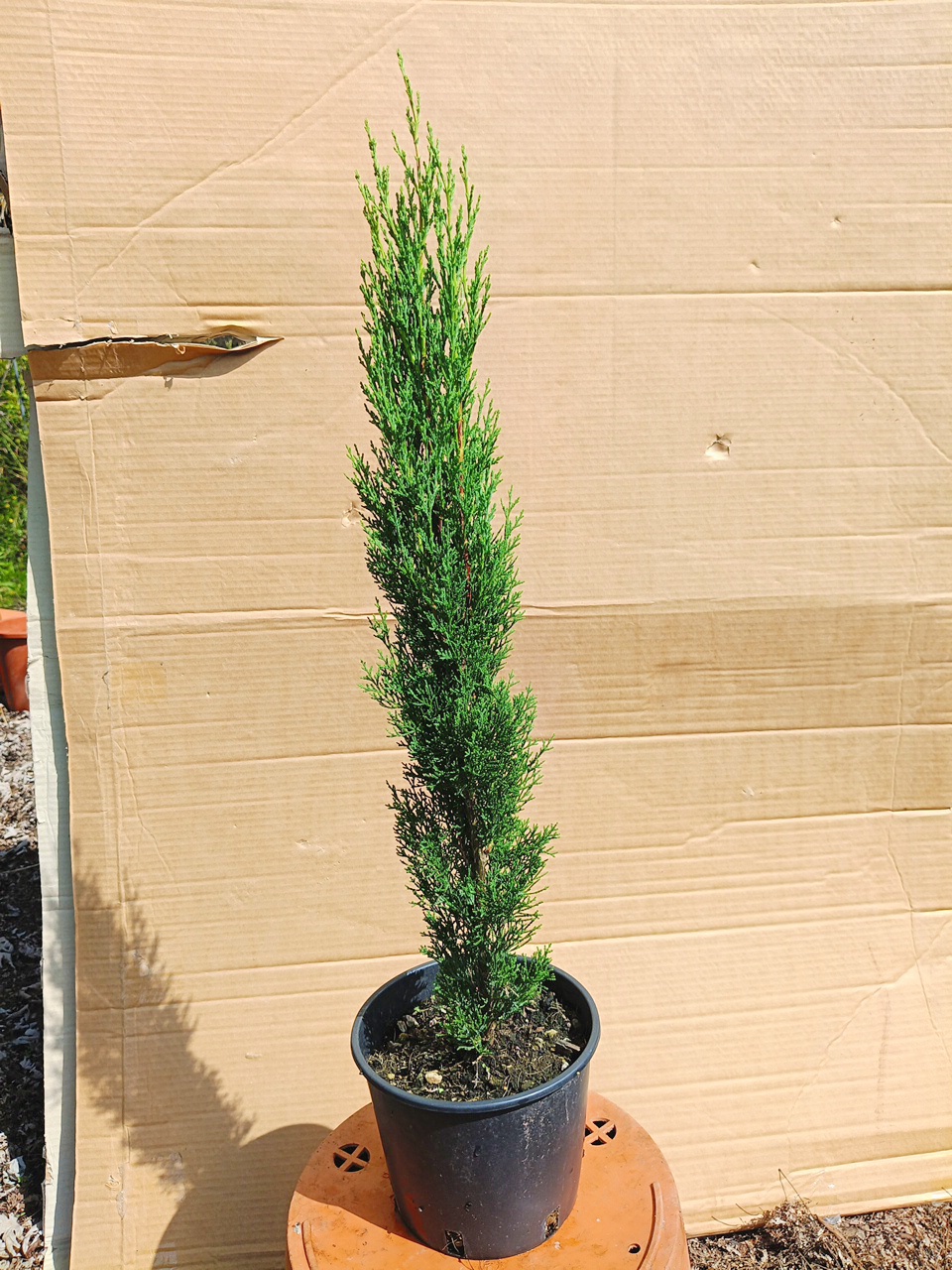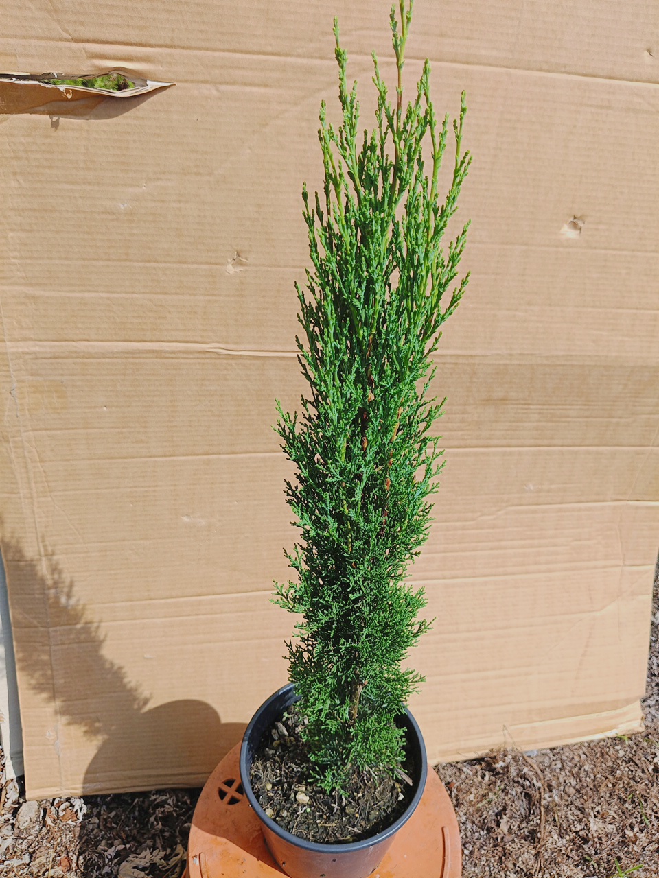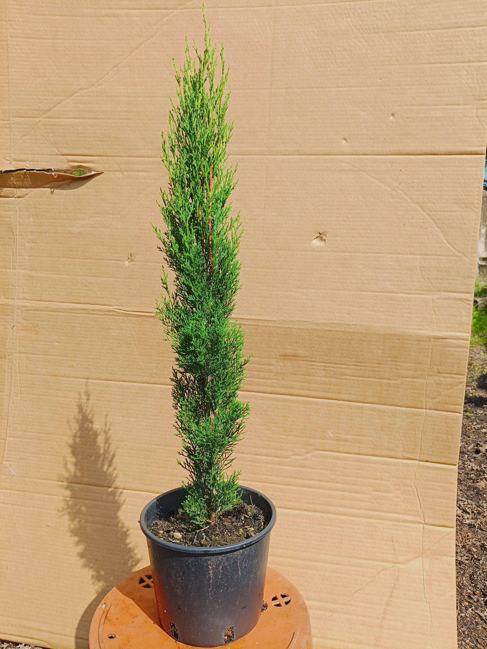 Cipresso Totem, varietà del cipresso sempevirens. Ha portamento più compatto e colore leggermente più chiaro. Impiegato isolato o per delimitare strade o viali.