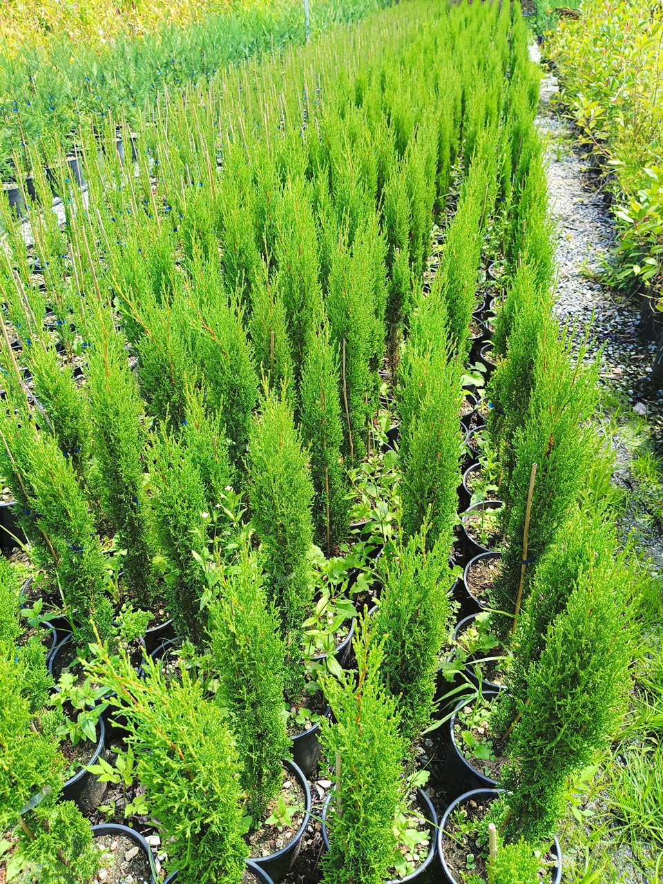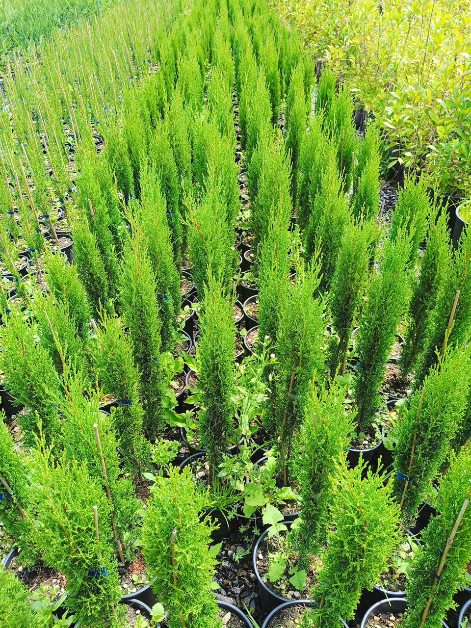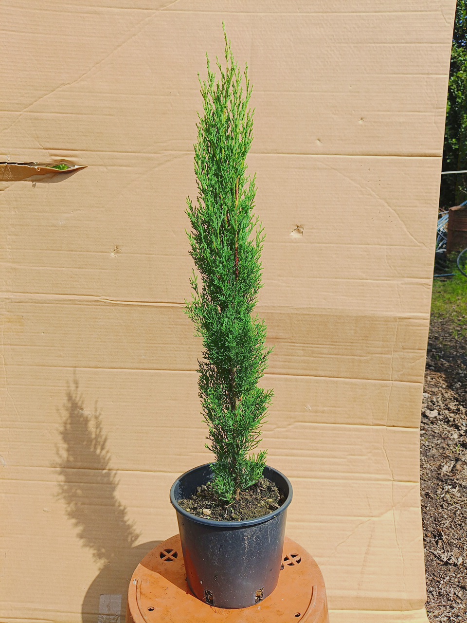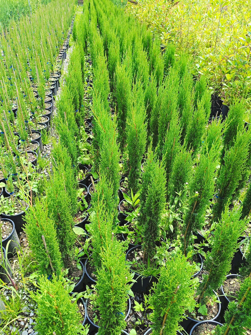 Cipresso Totem, varietà del cipresso sempevirens. Ha portamento più compatto e colore leggermente più chiaro. Impiegato isolato o per delimitare strade o viali.
